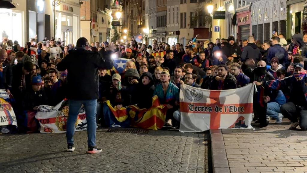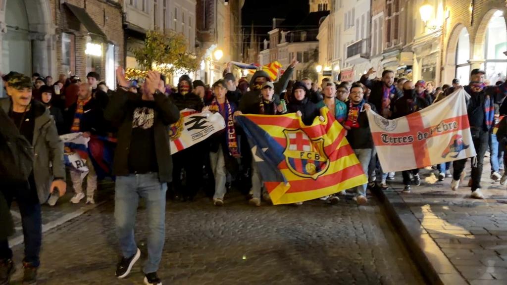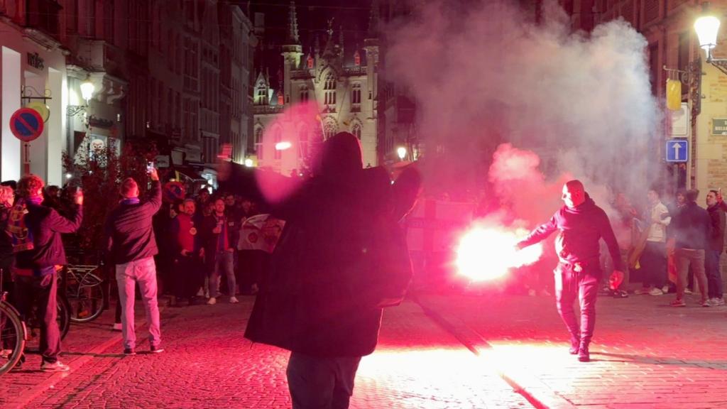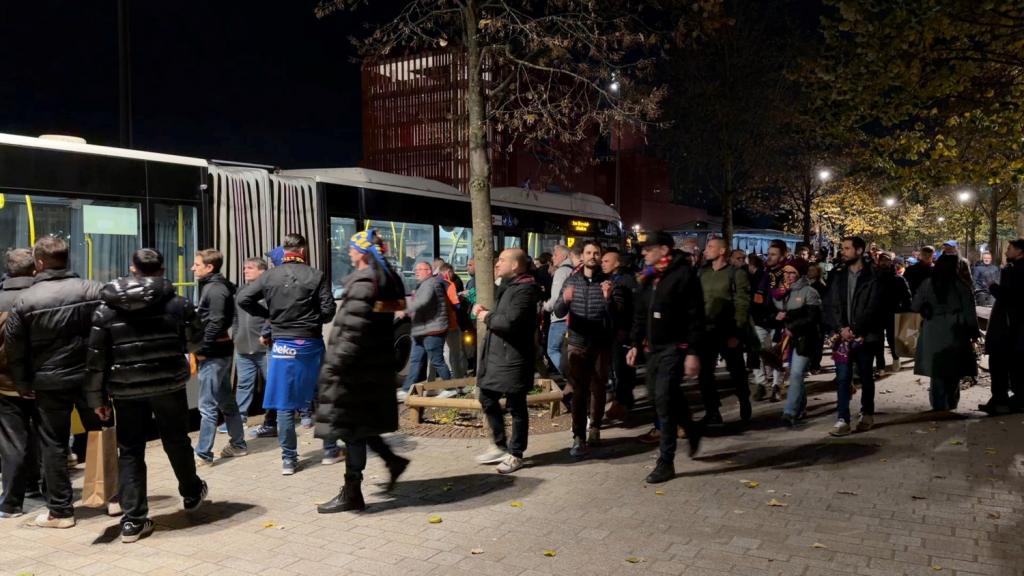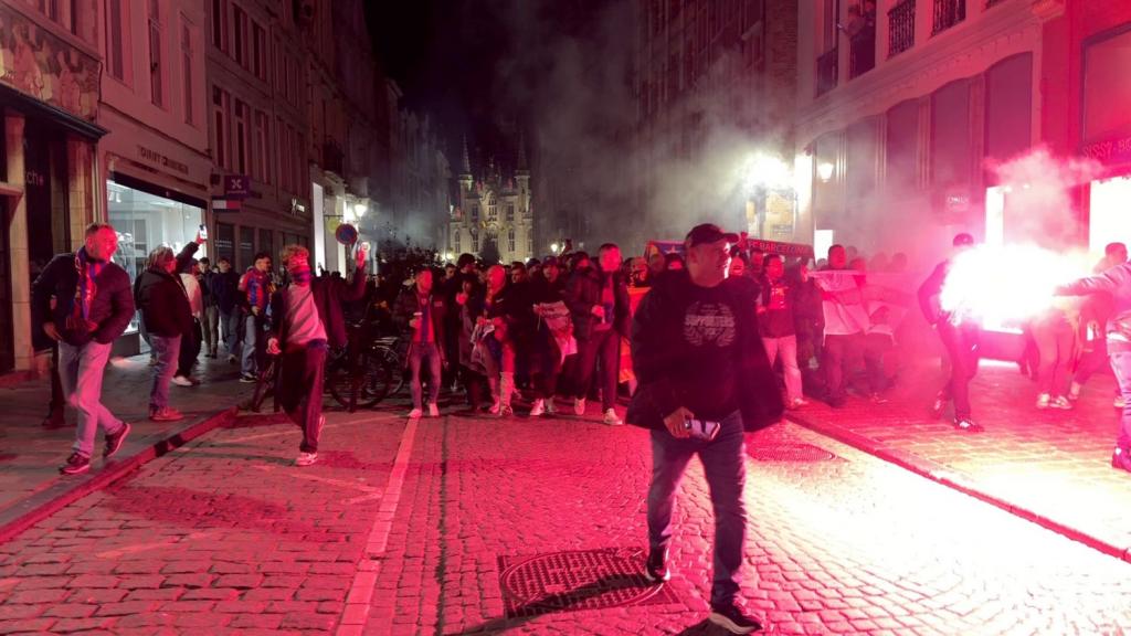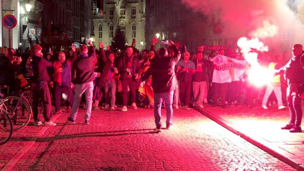 Wat kalm begon ontaardde in een bus van de Lijn die volledig uitbrandde. Supporters van FC Barcelona die in groep naar het ‘t Zand stapten maakten het te bont.