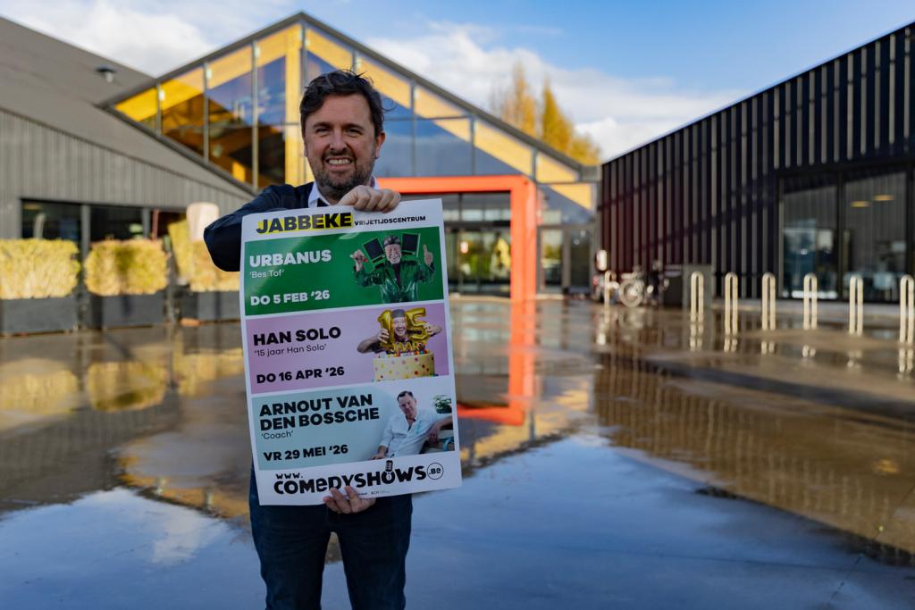 De eerste komiek die een passage maakt in Jabbeke is al meteen niet de minste. Urbanus brengt op donderdag 5 februari 2026 zijn show “Bes Tof” waarin hij zowel de nostalgische kant opgaat als nieuwe, verrassende moppen vertelt. Han Solo bestaat 15 jaar en is momenteel bezig met zijn succesvolste tournee ooit. Op donderdag 16 april 2026 maakt hij een stop in Jabbeke om een best of te geven van zijn 15-jarige carrière. Als laatste bestijgt Arnout Van den Bossche het podium op vrijdag 29 mei 2026 met een tour die alle records breekt: “Coach”. Voor wie niet genoeg levensadviezen uit de show kan halen, heeft Arnout ook een boek uitgebracht. Deze heeft hij mogen voorstellen in De Tafel van Gert op Play. Aan het lijstje van zalen zoals de Lotto Arena in Antwerpen en de Coretec Dôme in Oostende, voegt hij dus ook het Vrijetijdscentrum van Jabbeke toe. Pieter De Wulf hoopt dat dit het startsein is van een jarenlange samenwerking met de zaal. (PADI)