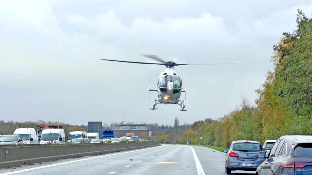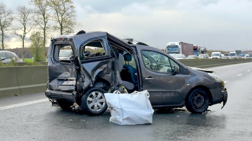 De impact was niet min en door de brokstukken was de snelweg volledig versperd. De hulpdiensten, samen met de mug-heli, kwamen ter plaatste om de weg te reinigen en de nodige signalisatie aan te brengen.