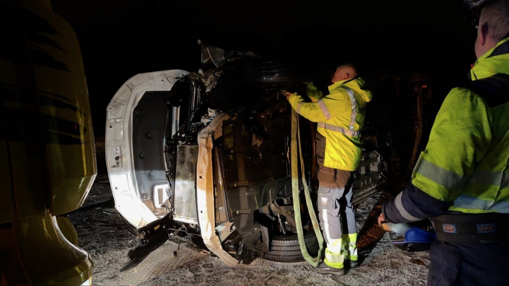 Aan de overkant van de autosnelweg belandde dan weer een personenauto van de weg. De strooidiensten waren blijkbaar niet op de hoogte van het weer dus werd er nergens gestrooid. Met vele bestuurders die zich lieten verrassen tot gevolg.