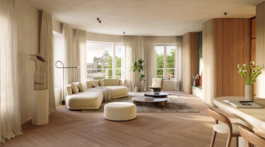 ?Kathleen Dewulf, CEO van Global Estate Group: “We laten de elegantie van de jaren vijftig heropleven door verleden en heden op een natuurlijke manier in elkaar te laten overvloeien. Hier wonen betekent opstaan en vanuit je woonkamer of vanop je terras het Jubelpark binnenkijken tot aan de bekende Triomfboog. Zo’n zicht, de nabijheid van de Europese wijk en de toekomstige Amerikaanse ambassade gecombineerd met het beste wat de stad te bieden heeft qua vrijetijdsbesteding maakt dit een uniek project in het Brusselse topsegment.”
