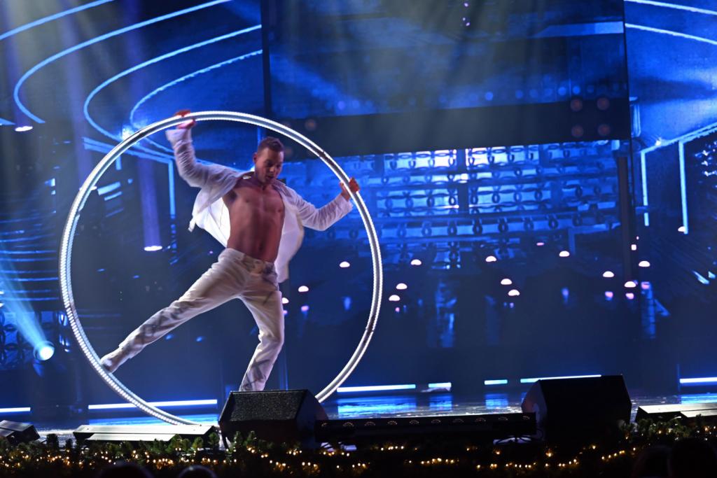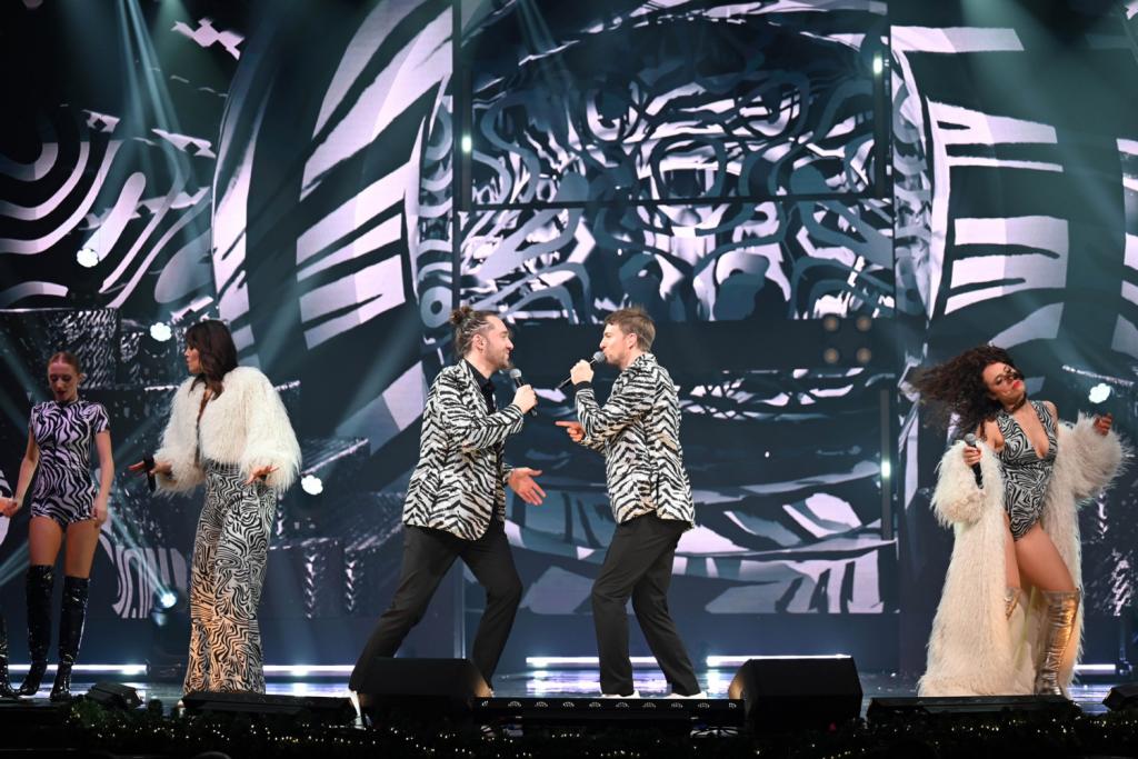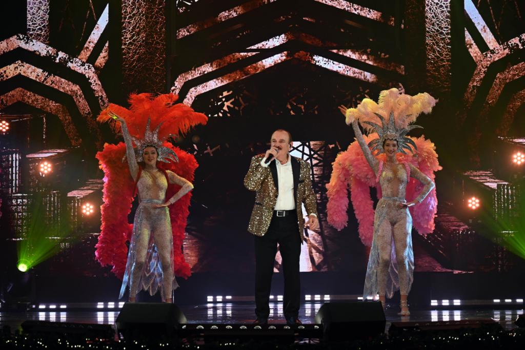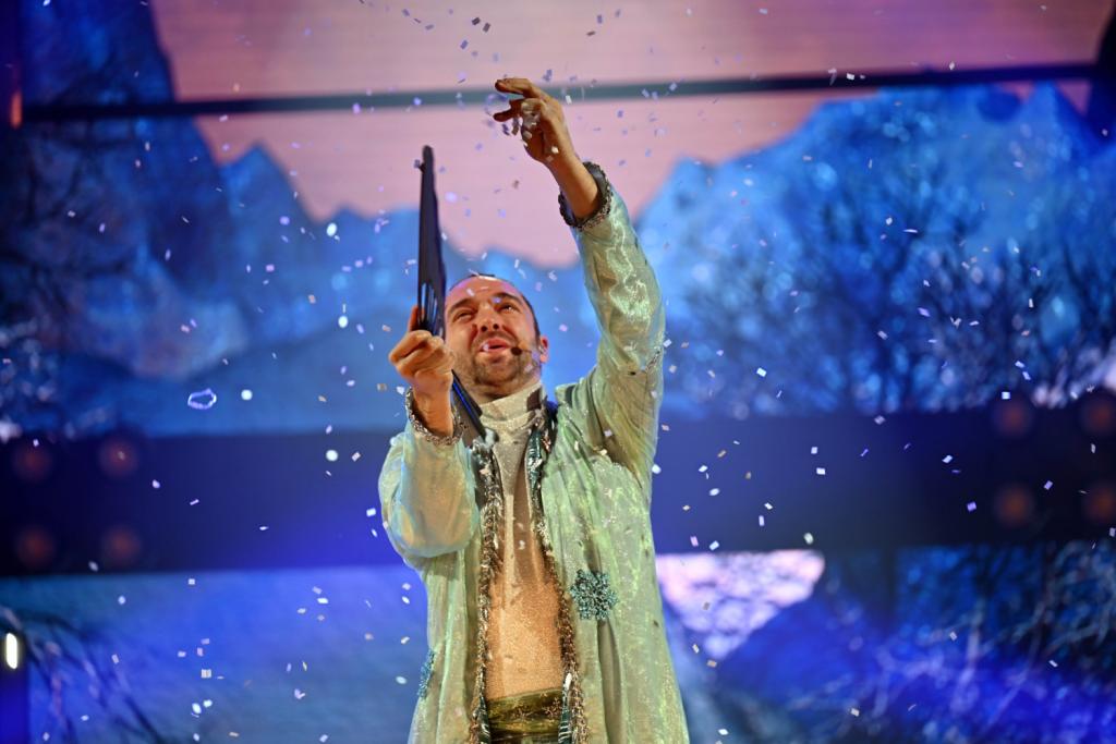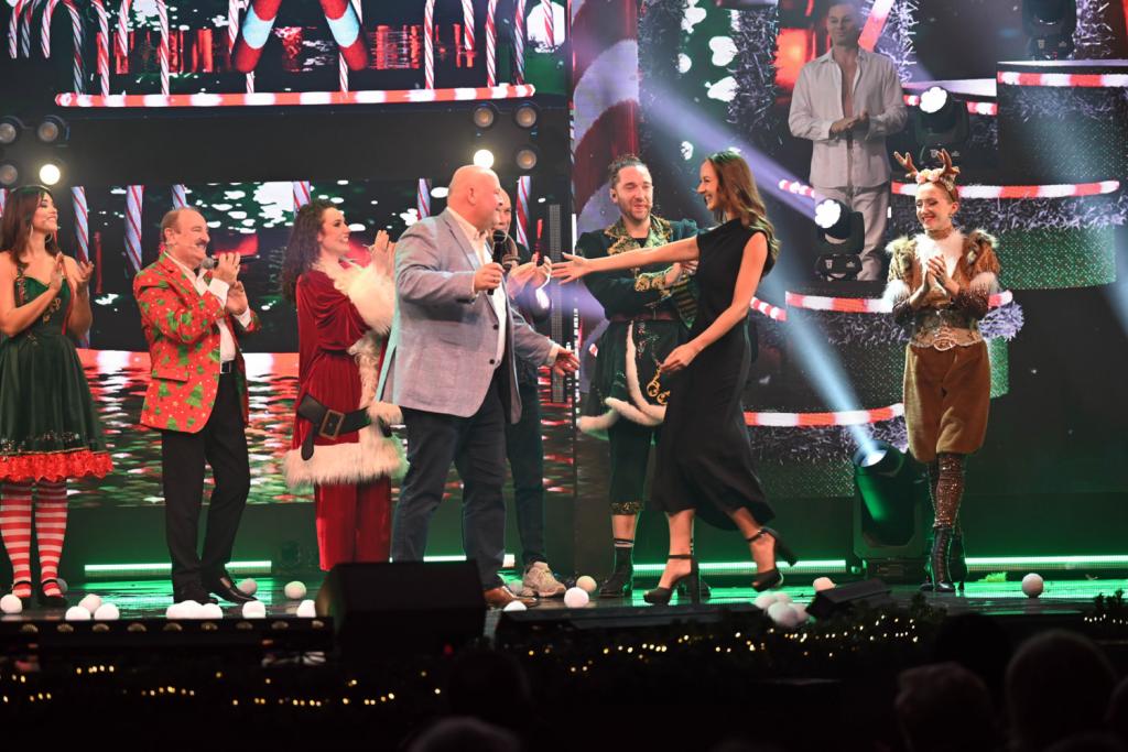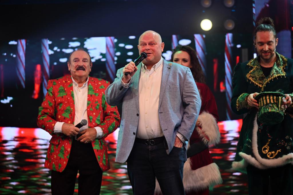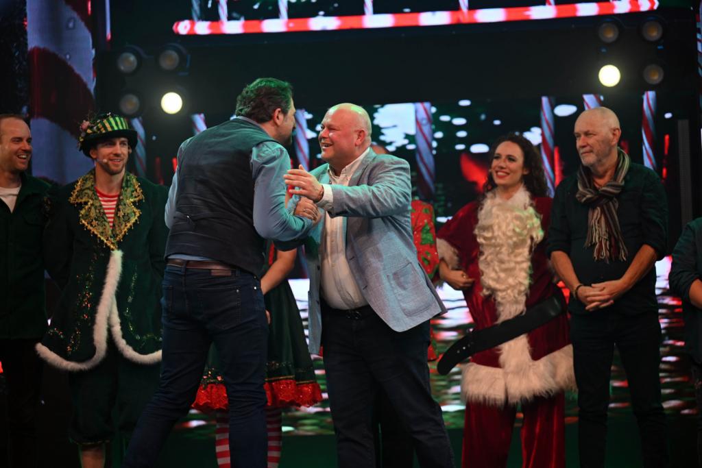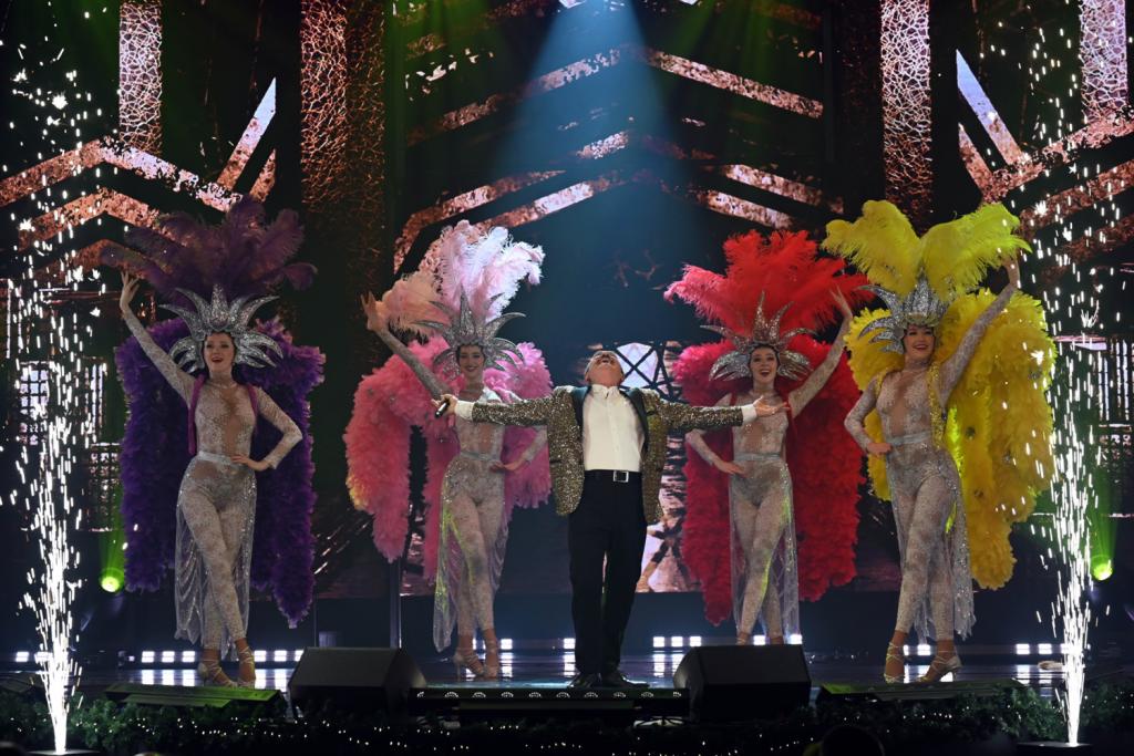 Er viel zoveel te beleven tijdens ‘Let It Snow’, met centrale gast Hugo Sigal, die natuurlijk tijdens de voorstelling stilstaat bij zijn carrière. Zijn mooie momenten met Colleke, maar ook de cruises, het Eurovisiesongfestival, enz. Wat ons tijdens de première opviel was dat het lang rustig bleef In de zaal. De première begon om 14.35 uur en het duurde tot 15.48 uur vooraleer het publiek enig enthousiasme toonde en dit toen Hugo ‘Mooi ‘t Leven Is Mooi’ zong. Opvallend was ook dat helemaal op het einde er geen staande ovatie kwam van de voltallige zaal. Links, in het midden en rechts stonden er wat mensen spontaan recht… Kwam dat echt omdat het een namiddagshow was? (PADI – foto’s Sandro)