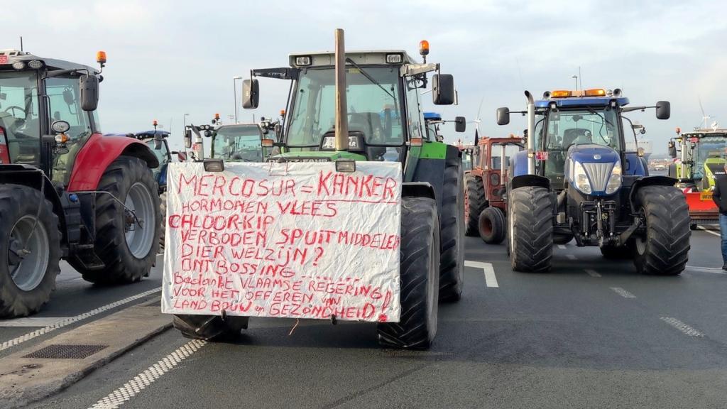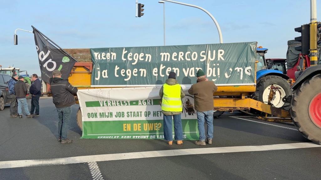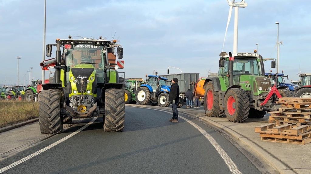 In Zeebrugge voeren landbouwers actie tegen het Mercosur-akkoord. Aan de A11 blokkeren ze met 150 tractoren de weg. Het vrachtverkeer wordt er mondjesmaat doorgelaten. De boeren willen er nog tot donderdagavond blijven staan. Eind december was er ook al een actie in Brugge.