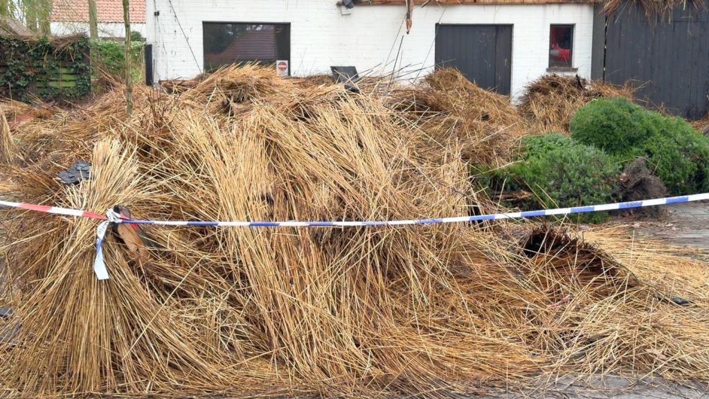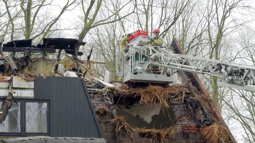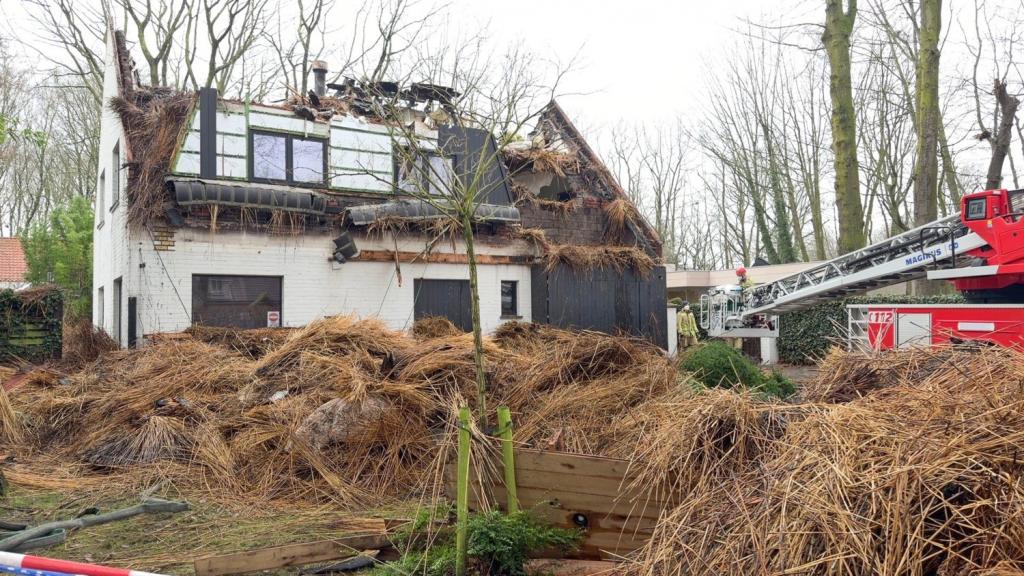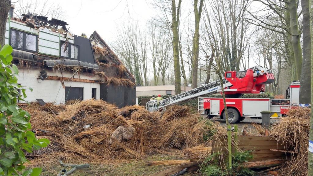 Vandaag, maandag, is de brandweer nog steeds ter plaatse om alles veilig te stellen. Tot laat in de avond en nacht werd het stro van het dak met een grijpkraan verwijderd zodat het blussen vlotter kon verlopen. Bij daglicht is de schade aan het huis pas echt duidelijk. Wat initieel een schouwbrand was, bleek al snel een veel grotere omvang aan te nemen. Meerdere brandweerkorpsen waren uren in de weer met het blussen van het dak van de woning.