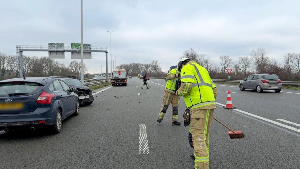 Zaterdagvoormiddag rond halféén gebeurde op de E403/N31 in Brugge een ongeval. Net voorbij het klaverblad kwamen twee personenauto’s en een vrachtwagen met elkaar in botsing.