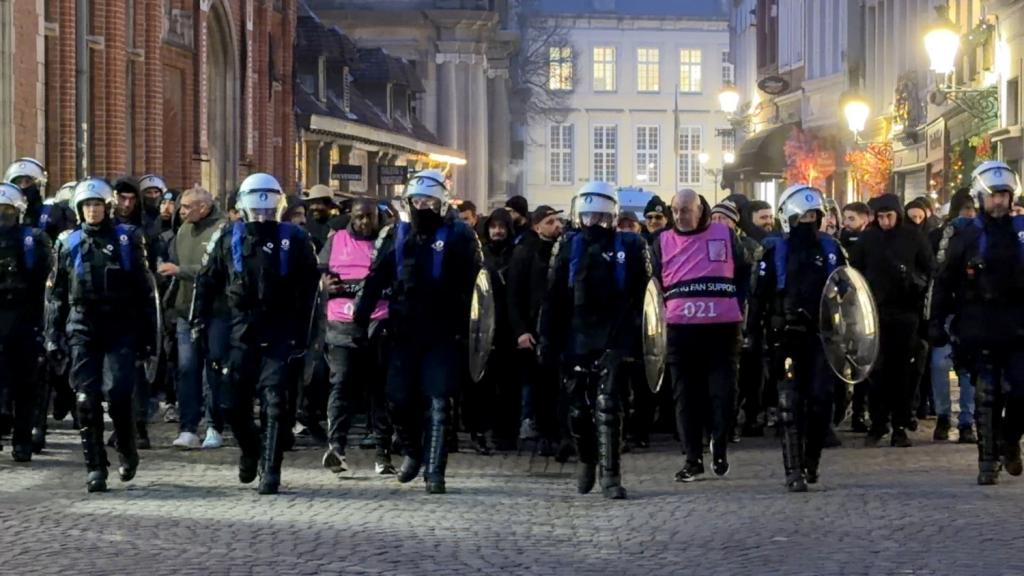Er was massaal veel politie in de Brugse binnenstad woensdagnamiddag. De reden? Er bevonden zich supporters van Olympique Marseille in het stadscentrum. Normaal gezien mocht dit niet. Gezien de kwalijke reputatie van de harde kern van de Zuid-Franse ploeg, had Dirk De fauw een burgemeestersbesluit genomen. Dat hield in dat er geen fans toegelaten werden in Brugge.